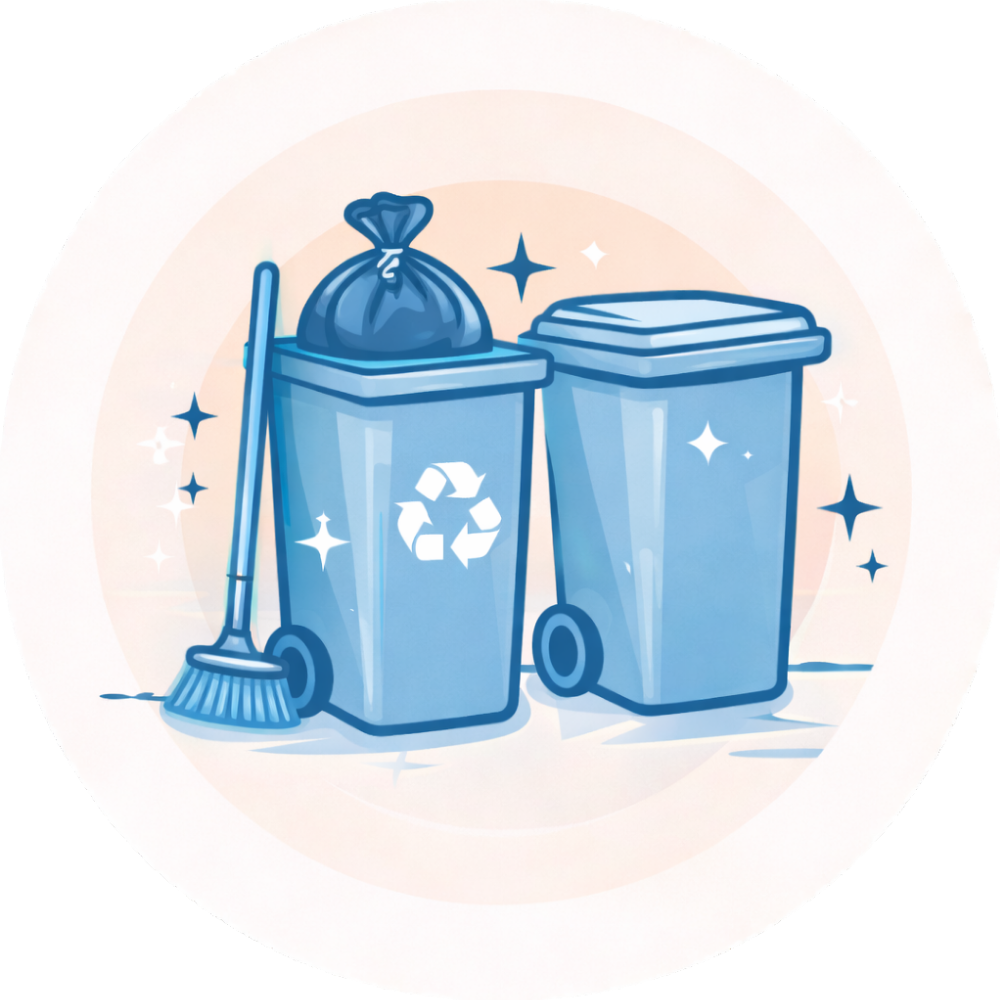 Bereitstellung, Ordnung und Reinigung der Müllbereiche für ein sauberes Gesamtbild.